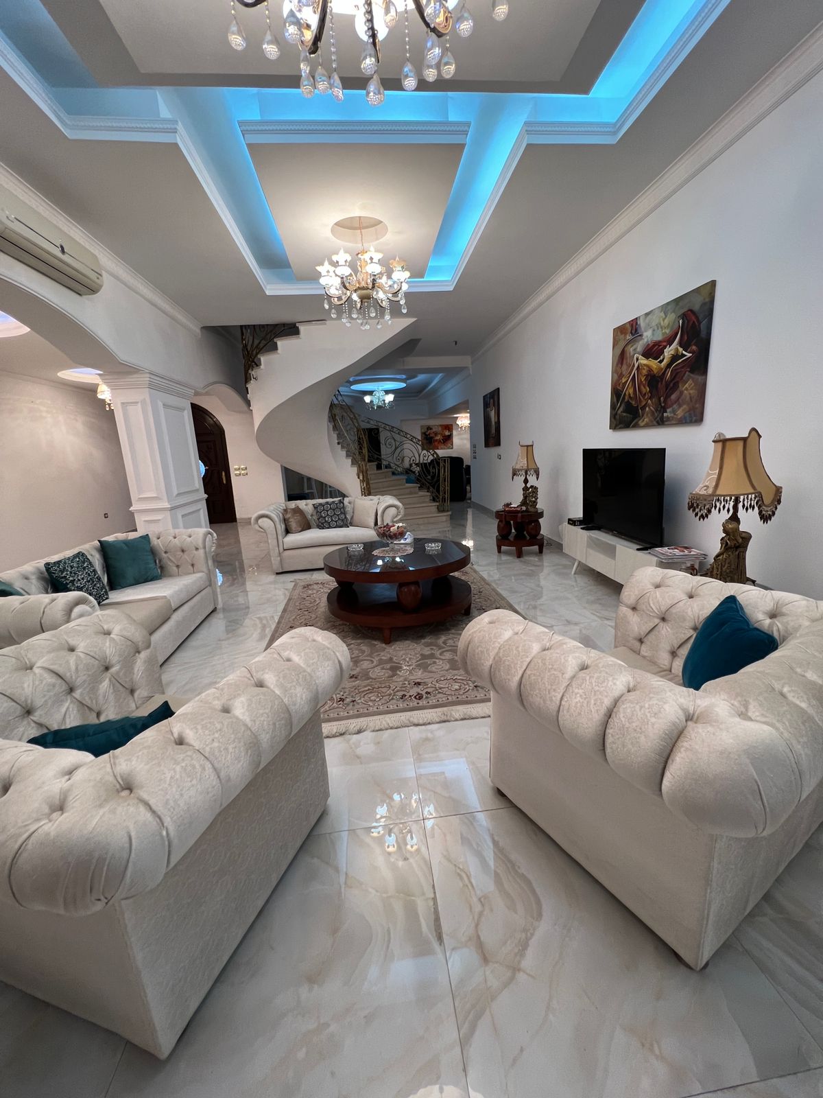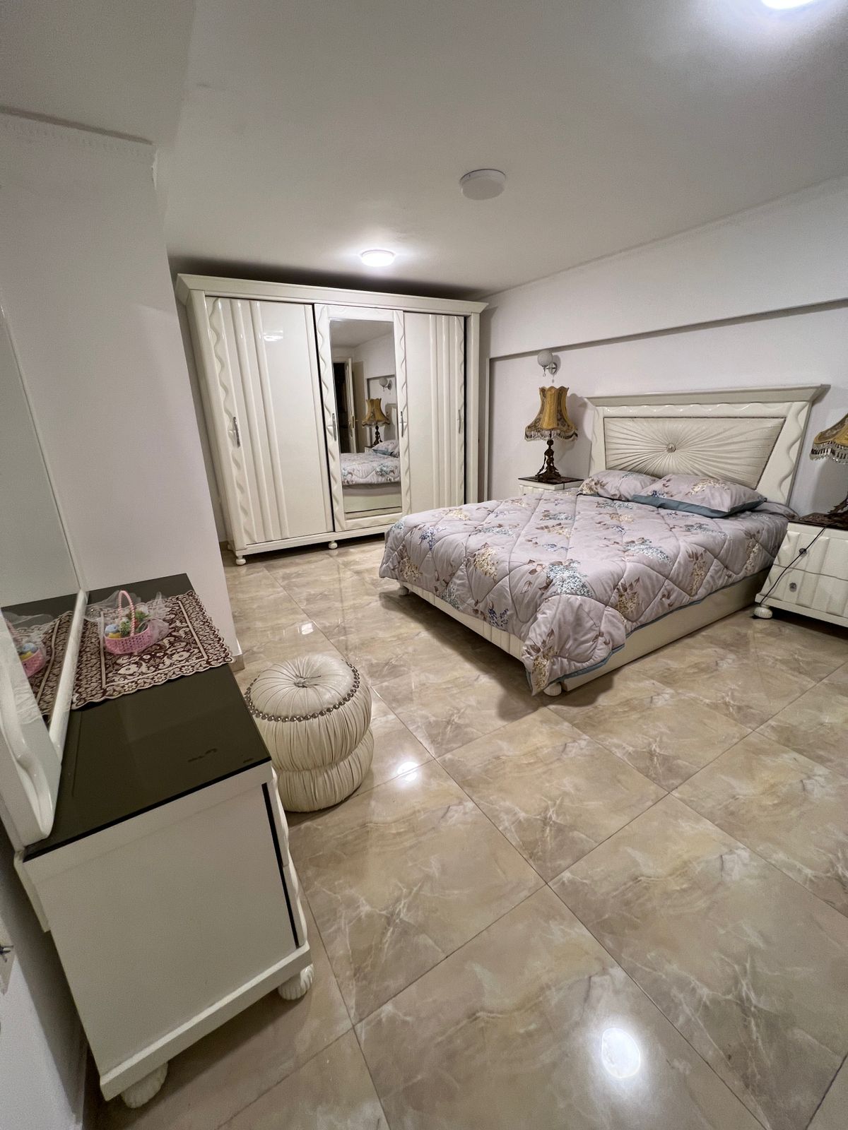 دوبلكس مفروش للايجار470م فى جنوب الاكاديميه (و) دوبلكس ارضي وبيسمنت مساحة ٣٧٠+١٠٠ جنينة ٤ غرف نوم ٤ حمام مطبخ رسبشن كبير مدخل خاص شترز للشبابيك حديد في البيبان مكيفات/ سخانات تراس غاز